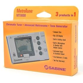 This review is from: Sabine MT9000 MetroTune Chromatic Tuner and Metronome (LCD)I'm a professional guitarist. I mostly teach guitar lessons, but also play solo gigs for weddings, parties, bars, coffee shops. I haven't had to do any other work since 2001 (it's late 2009 as of this writing). As a guitarist, I play acoustic, electric, and classical. I need to play Metallica, I play Metallica. Elliot Smith, I play Elliot Smith. Bach, I play Bach. Versatility has always been my thing. I wouldn't have even mentioned that, but this tuner has been taken down more notches by other reviewers than I think it should have been. It is the best tuner/metronome that you can find under $[...]. Period. I don't even know of other tuner/metronomes over that price range, b/c these days, they're all under [...] I have used the $[...] strobe tuner (not also a metronome) that's out there, and it's way better than that. A lot of the poorer ratings are from trombone players. I don't have anything to say to them or the other horn players that are looking for something to help them improve their intonation. Maybe this product isn't for them. I don't know. If you are a guitarist, however, acoustic, electric, or classical, I recommend it as highly as I can. It's a sensitive and convincing tuner, and it's a loud metronome. It is, in fact, the loudest metronome I've ever experienced that is also a tuner. There are stand-alone metronomes out there that are louder than this one, but they aren't also tuners. It's really great, because it will subdivide beats for you if that's what you need. By "subdividing beats", I mean, if you want the metronome to kick out dotted eighths followed by a sixteenth, it'll do it, and it's not hard to figure out how. If you have trouble with that, take a lesson with a music teacher of any instrument, and s/he'll be able to sort you out. To give you a short list of similar products that I believe it's better than, it's better than the Boss TU80, and the Korg TM 40 (though for that one, the volume of the metronome is the deciding factor). In short, if you're a guitarist or a bassist looking for a pocket-sized tuner or metronome that you won't feel like upgrading from in the next 5 years or so, pick this one. It'll set you back about [...]...