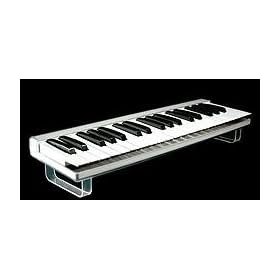 This review is from: GarageKeyI purchased this to have a keyboard for practicing while traveling. I use it with a laptop running Windows XP and Modartt PIANOTEQ 3 Virtual Instrument Software. I am happy to report that installation of this keyboard was quick and painless... plug and play, no headaches. I'd been looking for a full sized keyboard with about 3 octaves. I really wanted the width to be as small as possible so I could carry it onto an airplane and put it under the seat in front of me, which this allows for. When I travel, I can live without all the features that this keyboard does NOT have: pitch bend, mod wheel or a sustain button/sustain pedal input. There are only two buttons on this board: octave up and octave down. The only output is a single USB port, no MIDI in, out or through. I chose this over the Korg MICROKEY 37-Key Portable Keyboard because of two reasons: 1.) the keys are full sized [yet both keyboards are still about the same total width] 2.) the lowest key on the one I have is F, not C (there appears to be an earlier version with C as the lowest note). I can set the lowest C on the keyboard to middle C and play closed voiced chords with my left hand, have lower notes available below middle C and have plenty of room to play melodies/improvise with my right hand. Two octaves total are just not enough; three octaves from F is perfect for travel in my opinion.As for use during the flight, if you are seated in coach, you'll inevitably be spilling a bit into the airspace (pardon the pun) of the passenger(s) sitting next to you. So try to create a buffer zone from the general population with a tolerant coworker or loved one or hope you are sitting next to a patron of the musical arts or an unoccupied seat. I have played my Akai Pro LPK25 Laptop Performance Keyboard in coach no problem. OK, so I said it was a little quirky. Here is why: the clicky/noisy synth action keys have decent travel, but they don't release a note and resound another until they are brought about 95% back to their fully un-depressed position. This is quite hard to explain but really easy to grasp in person... Lets just say if you try to trill one note, you may not get every note to sound unless you let the key come pretty much fully up before hitting it again. This is a little extreme compared with all other keyboards I have played, but not a deal breaker, just suboptimal. I also have an M Audio KeyRig 49 49 Key USB Keyboard Controller which I like the action & feel of more. The keys are quite similar as far as resistance goes, but that is it. The GarageKey is not as even in tension from key to key and the keys can jiggle left and right. Finally, I have found the legs this thing comes with to be pretty useless. They are too wobbly so I don't use them. I guess if you were putting a QWERTY keyboard underneath to preserve desk space, they'll get the job done; I'd still explore alternatives. At the time of writing this review, I could not find a better keyboard for airplane/light travel. Its as small as it could possibly be with full sized keys (no wasted space/all keys). Having 3 octaves from F is ideal. so, 5 stars for product research. Product development is where they missed. I get the feeling that they reverse engineered another companie's synth-style keyboard with no expert knowledge of keyboards and only got close. 2.5 stars for key action/feel. It is unfortunate that they fell short here. The uniqueness of the size and number of keys is perfect. This will be my main travel keeper until something better comes along....