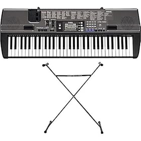 This review is from: Casio CTK720 Music KeyboardI purchased this Casio portable keyboard to replace a Yamaha instrument that had apparently gotten fried inside from having used the wrong AC power adapter. Not to mention that my very old Casio MT240 has either mysteriously disappeared from my house, or, more likely, has been stashed away so well that I can't find it. After searching for the missing keyboard for several weeks without any luck, I decided that I needed to buy another keyboard, since it bothered me that I had no portable instrument to take to picnics, nursing homes, Christmas gatherings, and otherwise perform on the go. The Casio CTK720 is a very basic keyboard, primarily designed for a beginner. However, there are plenty of features to satisfy the intermediate player and the keyboard hobbyist, such as myself. It has 61 full-size keys; 32-note polyphony; auto-accompaniment, in which the player may play a chord with one finger, or use the "fingered" mode, where one must hold down all the keys in a chord in order to get any sound from the left-hand side of the keyboard. There are many styles and voices from which to choose when playing this instrument. Plus, there is a three-step teaching system to aid the beginner keyboardist. To add to the fun, there is a microphone jack so one can sing along while playing or listening to the built-in songs on this keyboard. In total, there are 100 songs in this instrument, divided into two banks: a piano bank, with traditional piano songs; and a song bank, with fully orchestrated songs. There is a jack to accommodate an AC power adapter. It would probably be wise to purchase the Casio AD5R Adapter and only use 6 AA batteries when playing this instrument outdoors or in a place where there may not be an available electrical outlet. I've been able to use my original Casio AD5 Adapter, which had been used with my MT240 and other small Casio instruments that I had bought, sold, traded, or just plain given away, through the years. The Casio CTK720 has an earphone jack for private playing, and a jack to accommodate a sustain pedal, if a person should choose to use one. In my opinion, a sustain pedal definitely improves the sound when playing a portable keyboard. The playing isn't so choppy. One of the things that appealed to me about this keyboard is that there are dedicated sliding switches to adjust the volume levels for the master, microphone, and auto-accompaniment volumes. This is reminiscent of the older Casio instruments. There is also a USB port to connect the CTK720 to a PC to download styles and other files from the Casio Web site. I haven't really done anything with that. This keyboard does not have touch sensitivity. The piano and other voices are adequate enough, but they certainly don't compete with the more expensive instruments that I own. However, it beats my cheesy late-eighties Casio hands down, pardon the pun. If you want to improve the sound, hook the CTK720 to a small keyboard amp. I have a Crate KX15. The amplifier's 3-band equalizer and the 15 watts of power, compared to the 4 watts in this Casio, will make a big difference. If you seriously want to study music, this is not the keyboard to buy. I bought it for pure fun, portability and ease of use; and also because it was a clearance item from another online store. I was able to get free shipping because I also purchased a gig bag in order to transport this instrument. The keyboard was only $79.00 and the gig bag was $29.99. A great price for a piano in a bag, wouldn't you say? In summary, I wouldn't pay more than $100.00 for this keyboard. There are a lot of rhythms that I wouldn't even use. Though there are many voices, the organs and synths are pretty weak. The overall sound quality is certainly listenable, but nothing to write home about. It is simply a good basic keyboard for the budgetk-conscious person. A fun piano one can put in a bag....