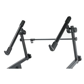 This review is from: On Stage KSA7500 Second Tier for Keyboard StandsI have been using the On-Stage Platform Stand for my heavy digital piano (Yamaha P120, 88 keys), and I recently bought the KSA7500 second tier attachment to support an additional light-weight board (Nord Electro 2, 61 keys). I have now used the second tier attachment at a rehearsal and at a gig in a small bar where I needed to minimize my footprint. I am overall mostly satisfied and will continue using the upper tier when needed.PROS: Compact, lightweight, fairly easy to attach, strong enough to support a light board, ability to adjust the tilt angle somewhat. Works with my existing platform stand. Allows two boards in same footprint as one. Able to comfortably play one board seated and the other standing.CONS: Height above bottom board is not adjustable. There is just enough clearance to see and reach the buttons on the bottom board; if the bottom board had an LCD display I don't think I could see it. The tilt angle left and right is adjusted separately and you have to make sure you set both arms to the same angle in the toothed wheels. Only the minimum tilt (one notch below flat) yields a comfortable playing position. The flat position offers no barrier against pushing the keyboard backward off the tier. The spacing between the arms is defined by the slots in the bottom stand and might not be enough for a longer board on top. When not attached to anything (i.e., during transport) the stand is "floppy" in the sense that the arms can rotate independently....