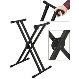 This review is from: On Stage KS8291XX Pro Double X Keyboard StandMy hubby bought this to support our very heavy and large electric piano. It works great. I have to sit back a bit so that my knees don't hit the cross when I play but that's o.k. - it encourages good posture. The heavy duty keyboard stand is also much more affordable for us than a proper electric piano stand....